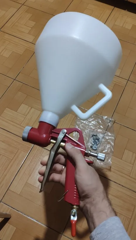 Пульт в руке лежит удобно, курок не подпружинен - на весу болтается, традиционно есть облои литья - края острые, резьбовые соединения не герметизированы - воздух немного травит, но решается подмоткой фум.лентой, вцелом товаром доволен - для ~$20 качество приемлемое! Доставка долгая - около 80-и дней в Украину, жесткая упаковка - доехал без повреждений.
