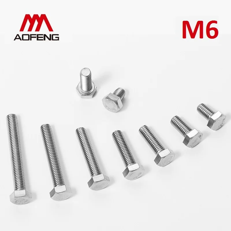 Винты M6 304 с шестигранной головкой, из нержавеющей стали внешний Шестигранник, M6 * 8 мм, 10 мм, 30 мм, 50 мм, 70 мм, 100 мм, 150 мм, 200 мм, болты DIN933