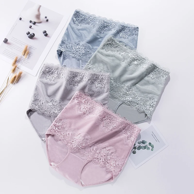 Трусы женские ZJX, 4 шт.компл., с высокой талией, бесшовные, из хлопка, для похудения, Корректирующее белье, сексуальные, кружевные подштанники
