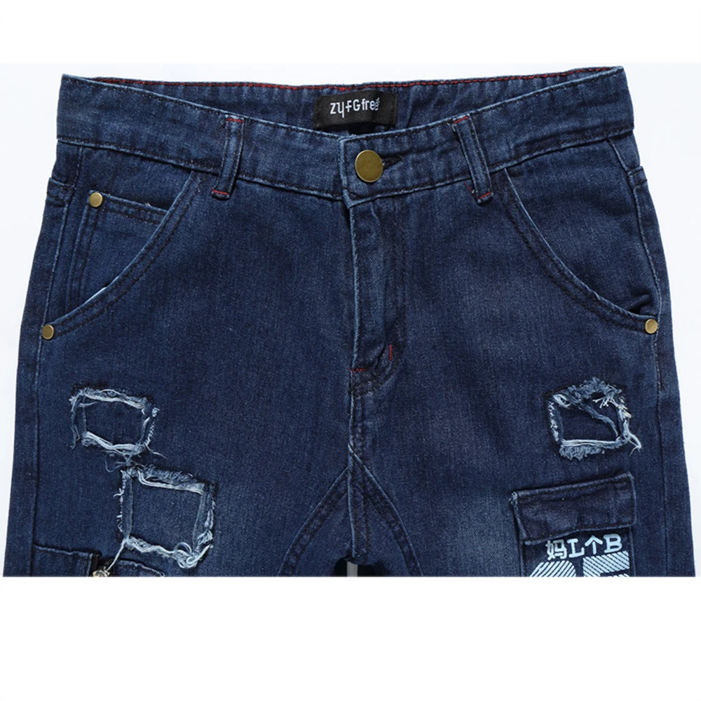 Свободные мужские модные повседневные джинсы ZYFG, индивидуальные джинсы на молнии с дырками и украшением, Молодежные джинсы полной длины, мужские брюки большого размера