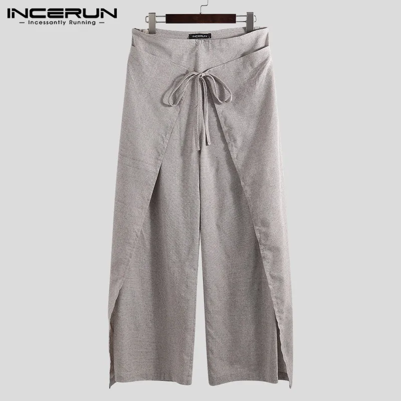 Брюки INCERUN тайские штаны для рыбалки для мужчин и женщин, винтажные свободные однотонные джоггеры с широкими штанинами, длинные штаны, S-5XL, 2021