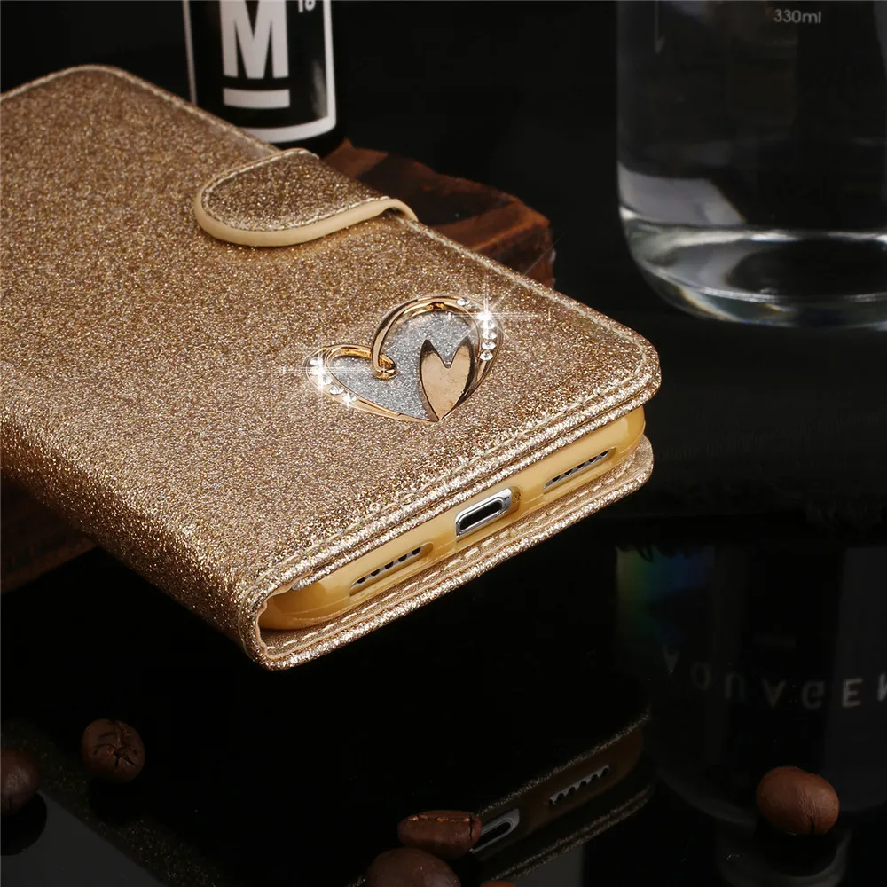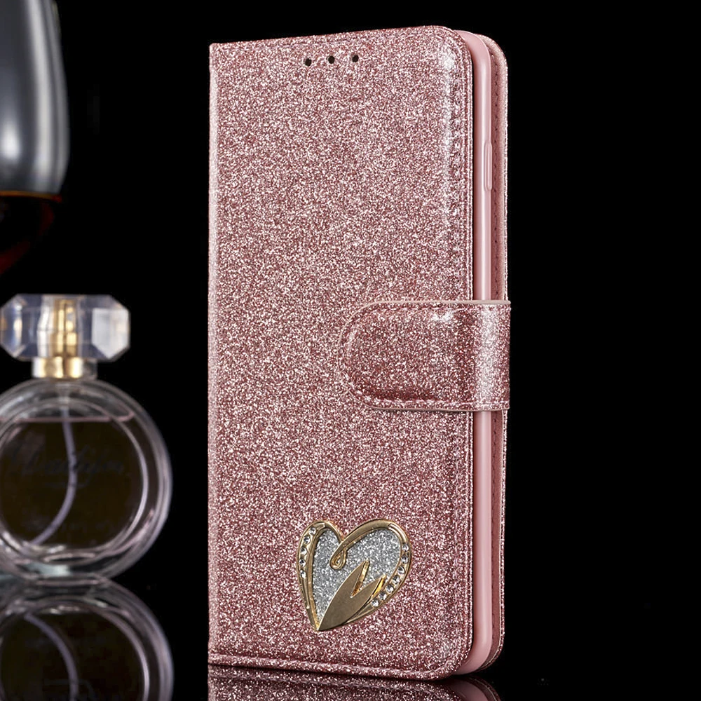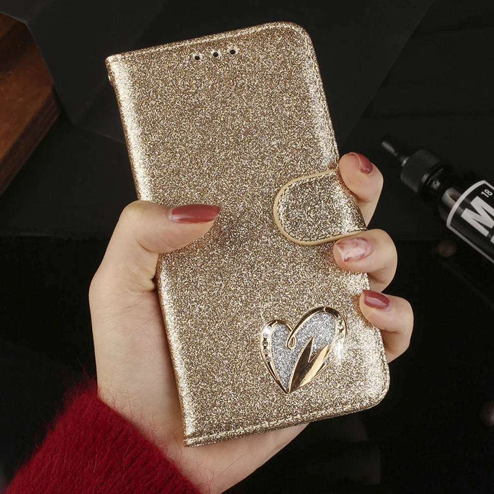 Блестящий чехол для Huawei P30 P20 Lite кожаный чехол-книжка Love J...