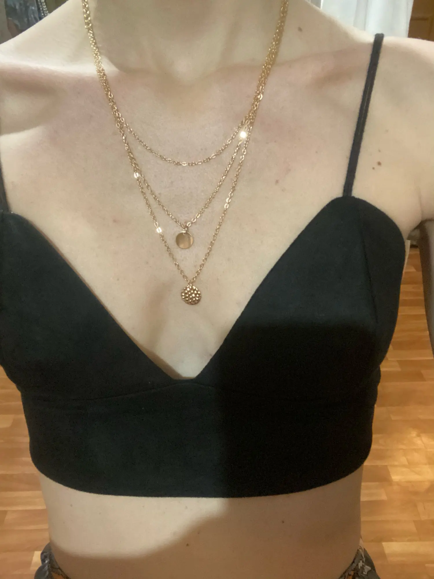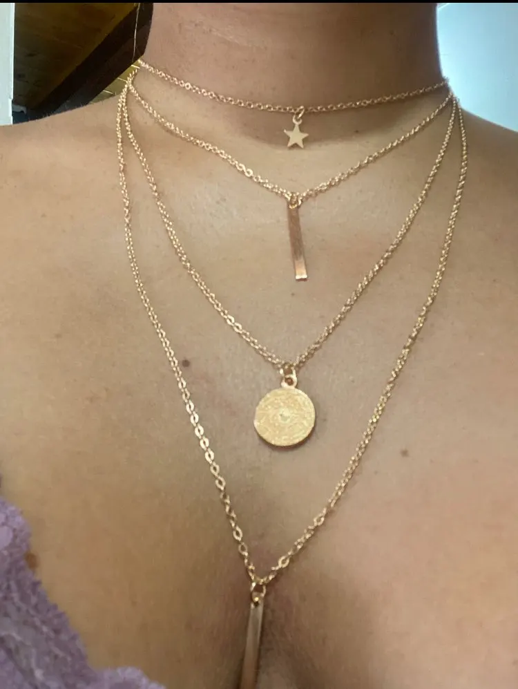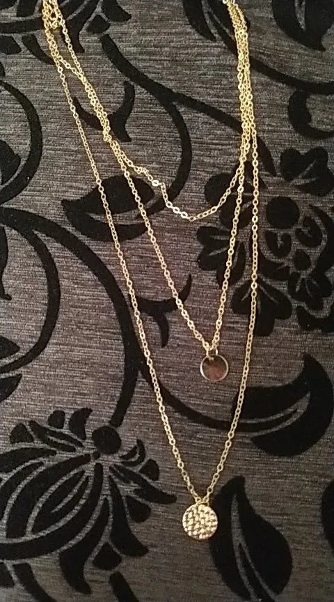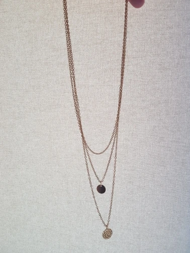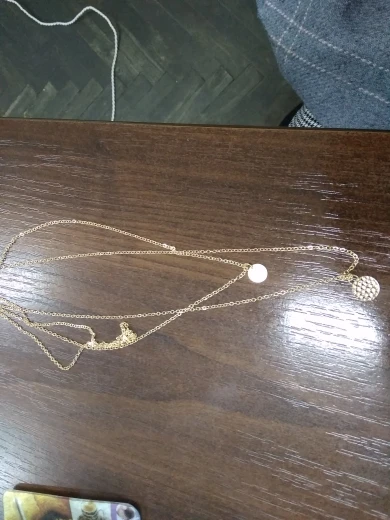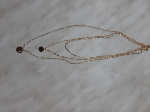 Спасибо большое! Очень красивое ожерелье и небольшая цена! Цвет металла с блеском, похож на золото!Цепочки красивые,длинные!