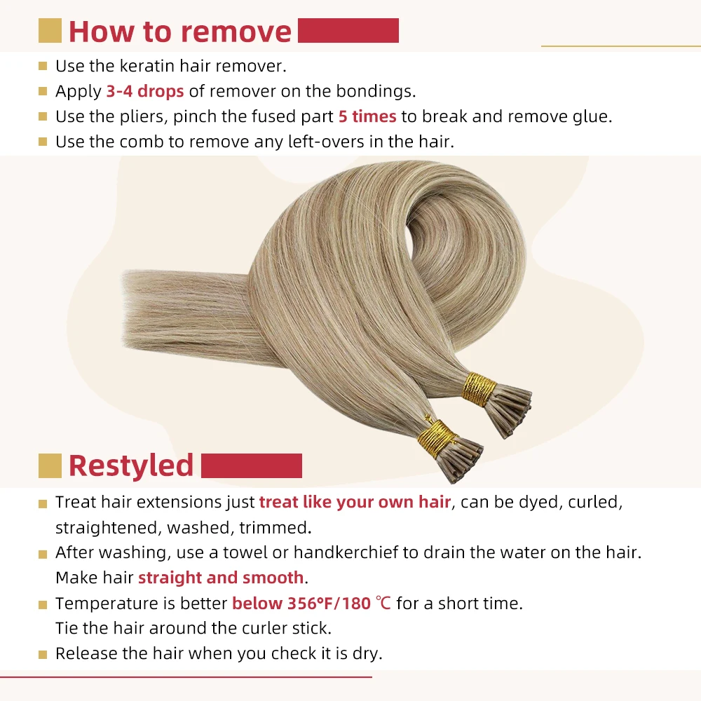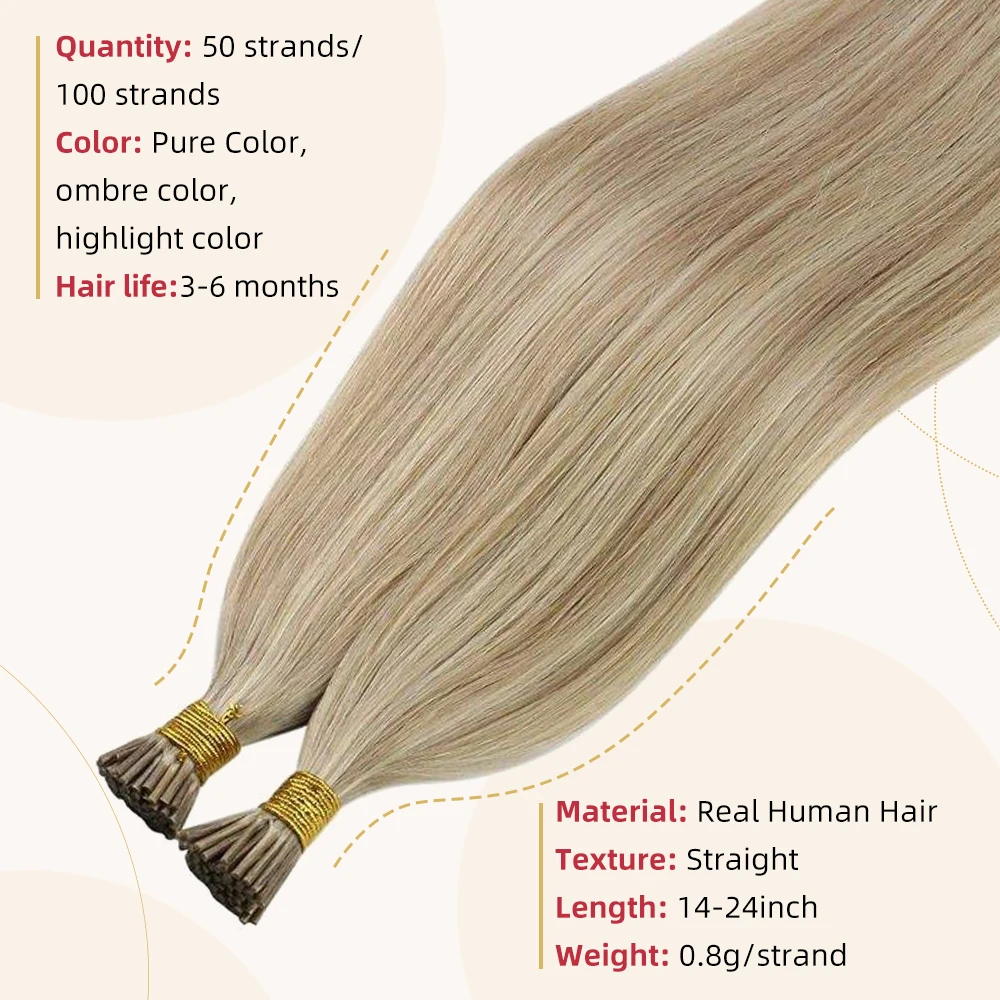 10 цветов I tip Наращивание волос, человеческие волосы, Кератиновое слияние, бразильские накладные волосы, прямые, машинное изготовление, Remy балаяж волосы