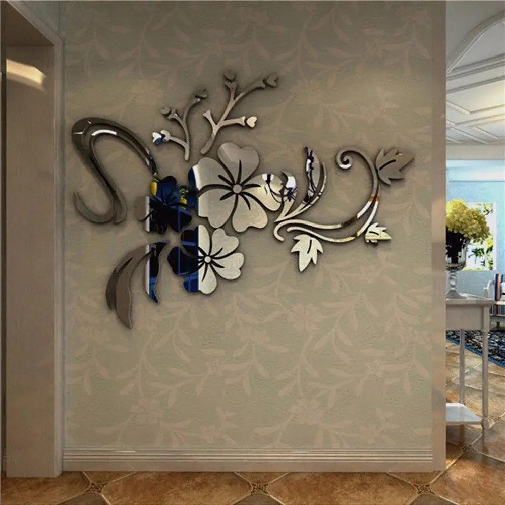 # S 3d зеркальная Цветочная художественная Съемная Наклейка на стен...