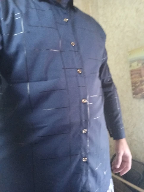 пришло на почту, несколько пакетов объединили в один пакет. материал приятный, ! сразу постирал, вдруг инфекции или обрабатывали химией?! после стирки ткань вся выпрямленная, без замятости, видимо синтетики больше половины. на ощупь приятно, гладенько, блестит. "На выход" самое то. по ширине плеч и длинна рукавов мне как раз(где то 52размер на наши), немного узко если для работы, рекомендую для стройных или как максимум средней упитанности, накаченным и полноватым будет узко!