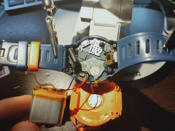 Поставил на детские часы. заряда хватает на сутки. доставка чуть более месяца.