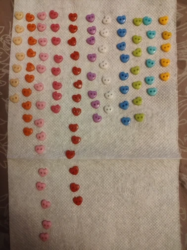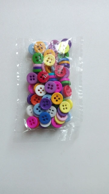 Доставка чуть меньше месяца. Пуговицы в нужном числе, но цвет существенно отличается от заявленного - более яркие (много красных, зеленых и прочего).