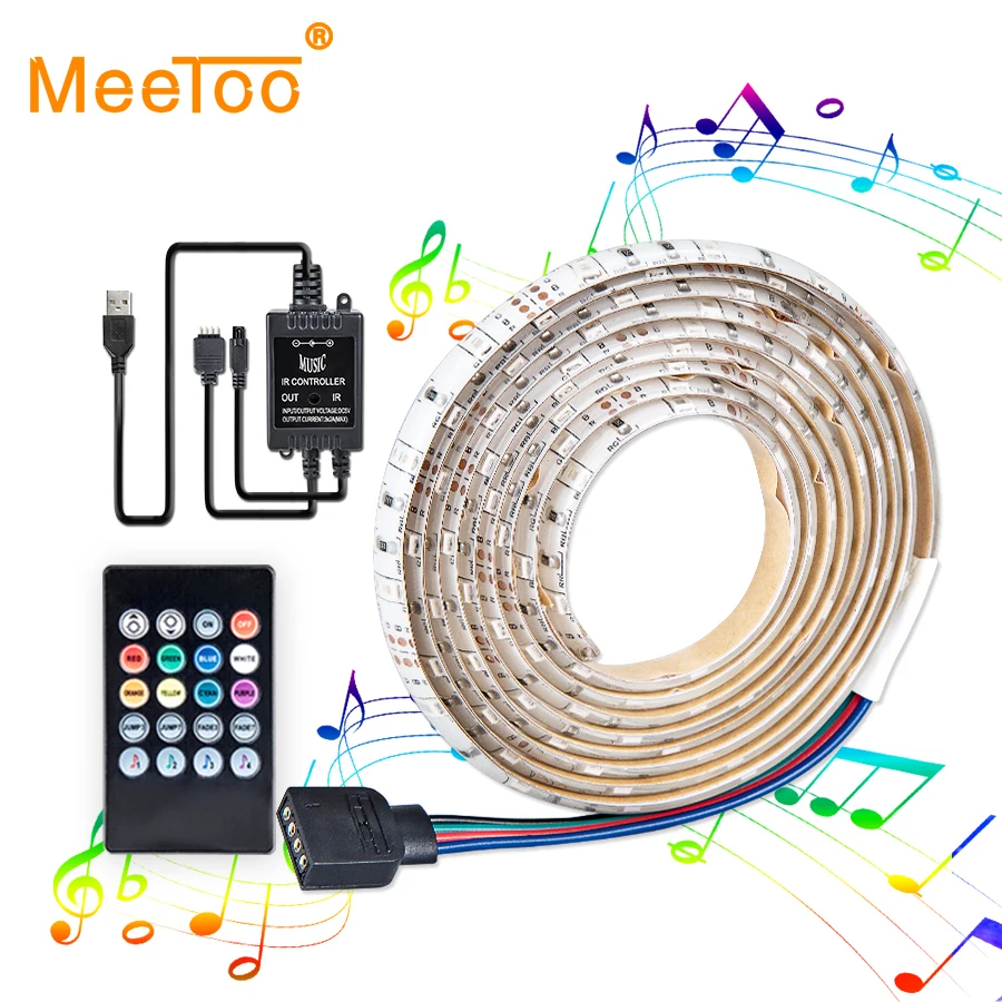 DC5V USB RGB Светодиодная лента Набор SMD 2835 музыкальный контроллер звуковой датчик светодиодный светильник гибкая лента Светодиодная лента компьютерная ТВ ПОДСВЕТКА светильник