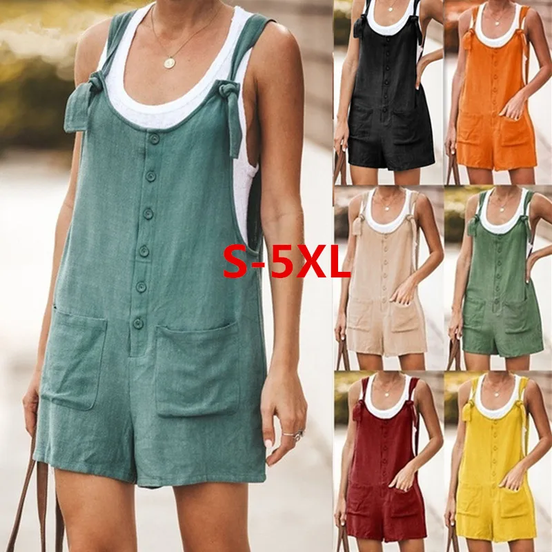 Женский хлопковый комбинезон на пуговицах, однотонный Повседневный ...