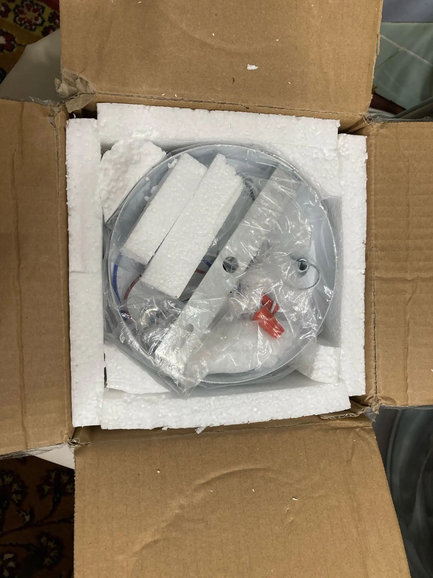 A bit different then on pictures- side fixing instead of bottom fixing. Ground wire not attached, so one needs to loosen the wires and one nut to attach it. Wire bundling is done with a bit too small connector- wires are loose. Otherwise ok