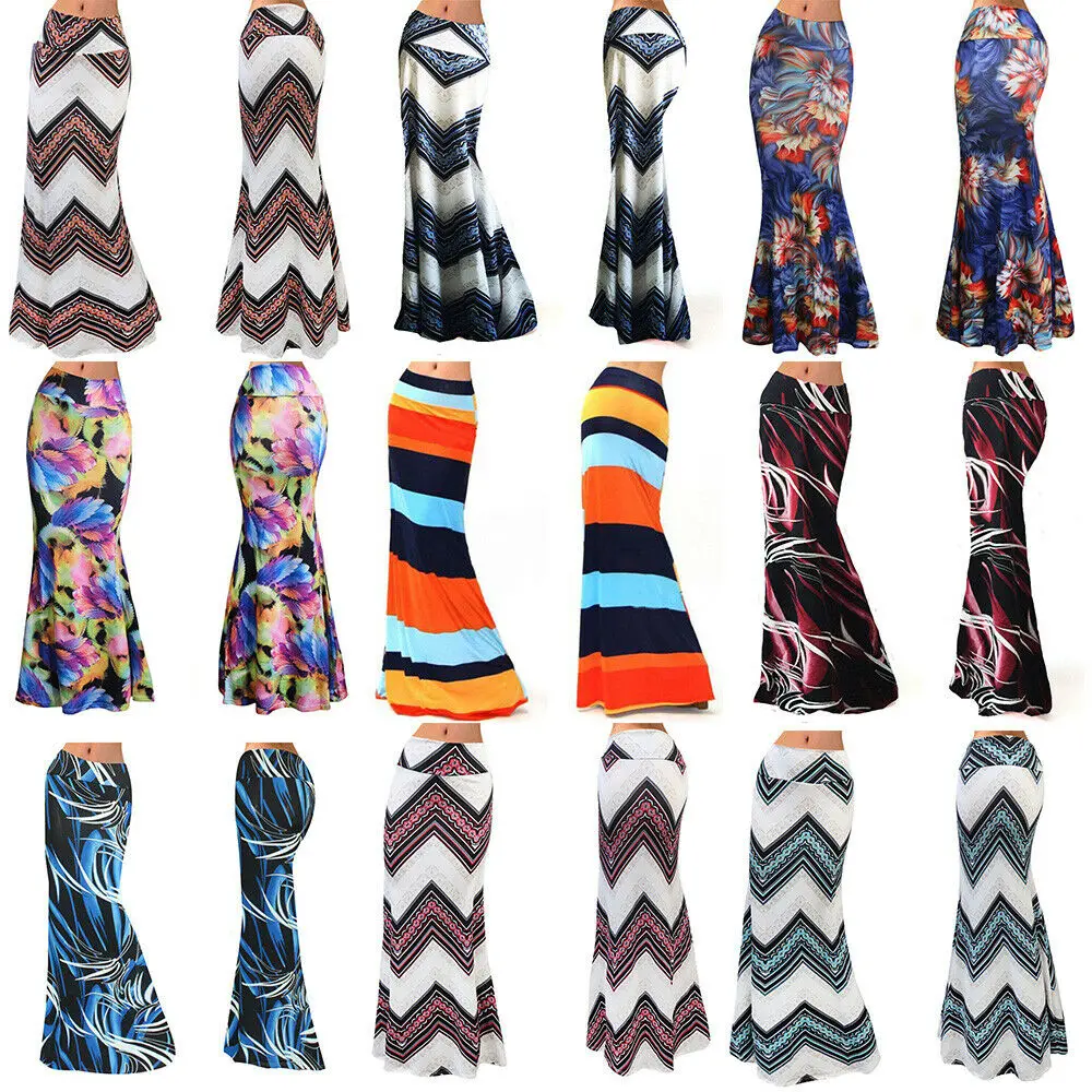 Женская длинная юбка-карандаш, стрейч, с цветочным принтом, в полоску, для пляжа, большого размера