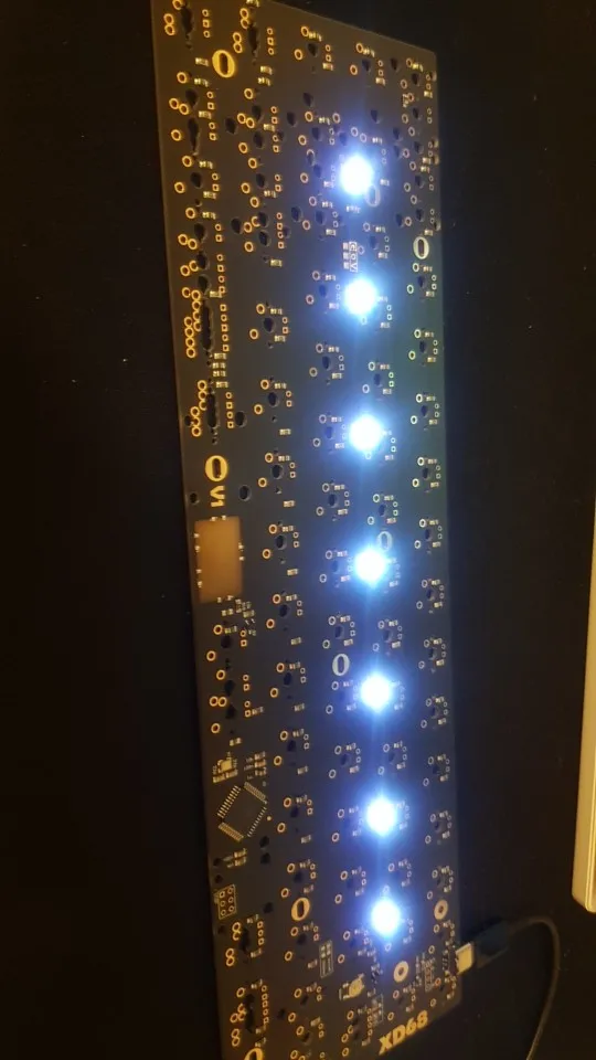Хорошая печатная плата, которая отлично работает с QMK и подходит для корпуса и пластины XD68. Светодиоды на задней панели светятся очень ярко и легко настраиваются с помощью QMK.
