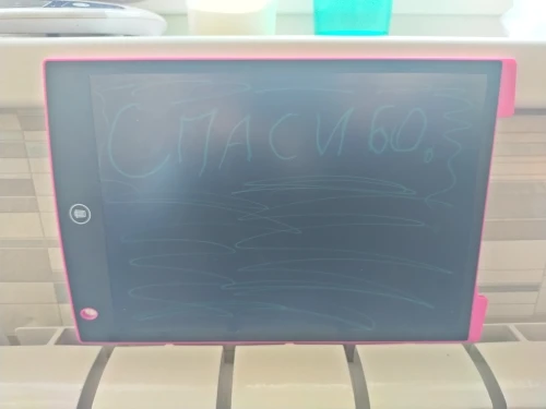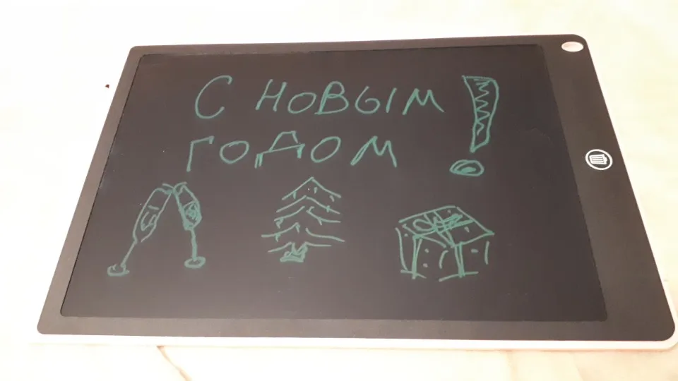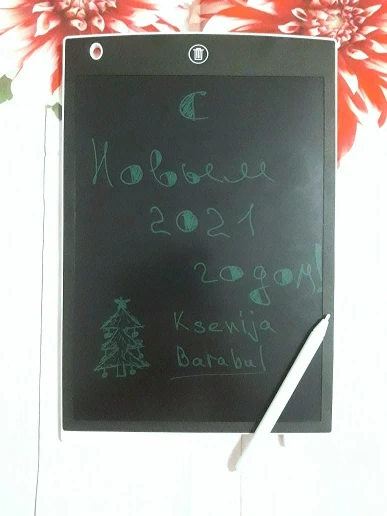 ⭐⭐⭐⭐⭐Потрясающий планшет!⭐⭐⭐⭐⭐ До этого брала маленький планшет на 4,5 дюйма NeWYeS, который у нас висел около года на холодильники. Мы настолько к нему привыкли, что захотели иметь такой же планшет, но большего размера. И вот мечта осуществилась! Соотношения размеров планшетов на 12 и 4,5 дюймов можно увидеть на фотографии 5. Планшет большой, удобный и на нем можно много чего написать или нарисовать. В отличии от маленького планшета в этом есть функция закрепления надписей от случайного удаления и это чудесно! Планшет практически ничего не весит, так как пластик достаточно тонкий. И этот факт надо учесть, если вы покупаете его ребенку, так как он может сломаться, если на него сесть или швырнуть. Надписи отлично видно, стилус крепиться удобно. Батарейка питания CR 2025 3V. Планшет отлично подойдёт для подарка! Товар, продавца и магазин РЕКОМЕНДУЮ!