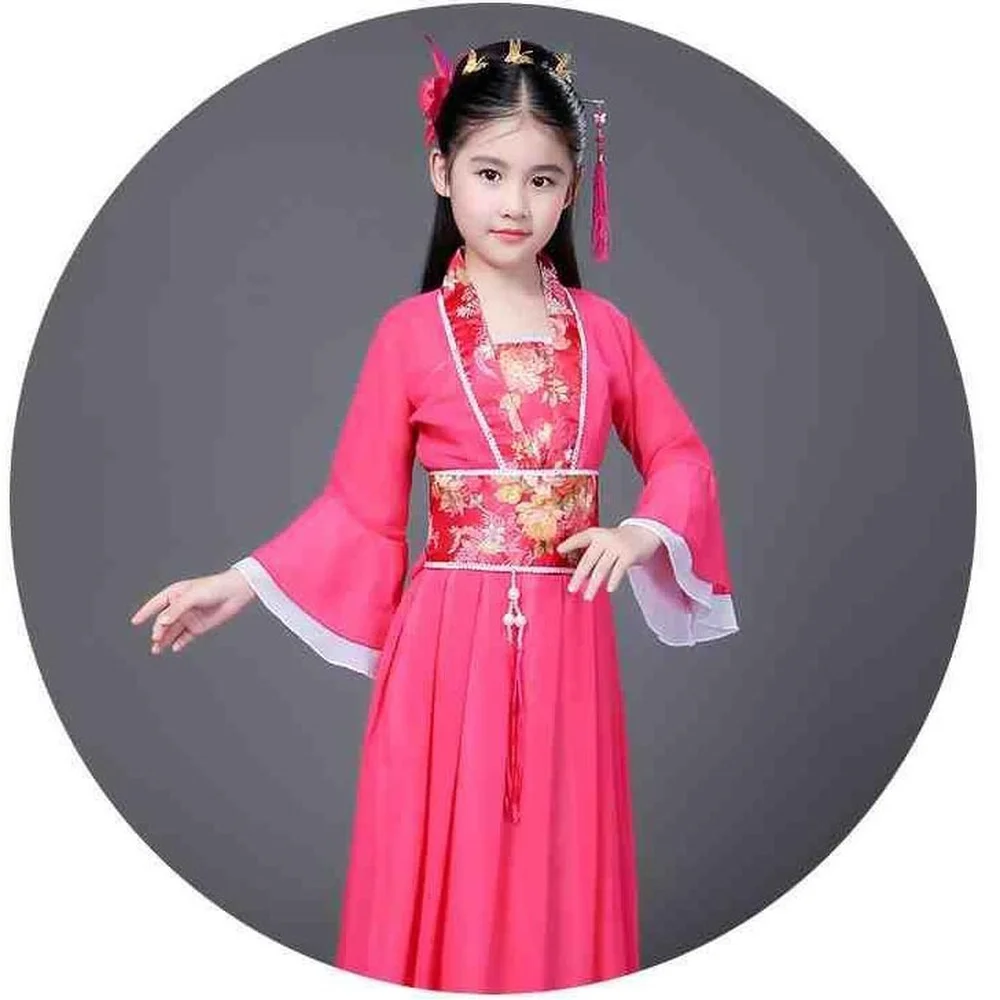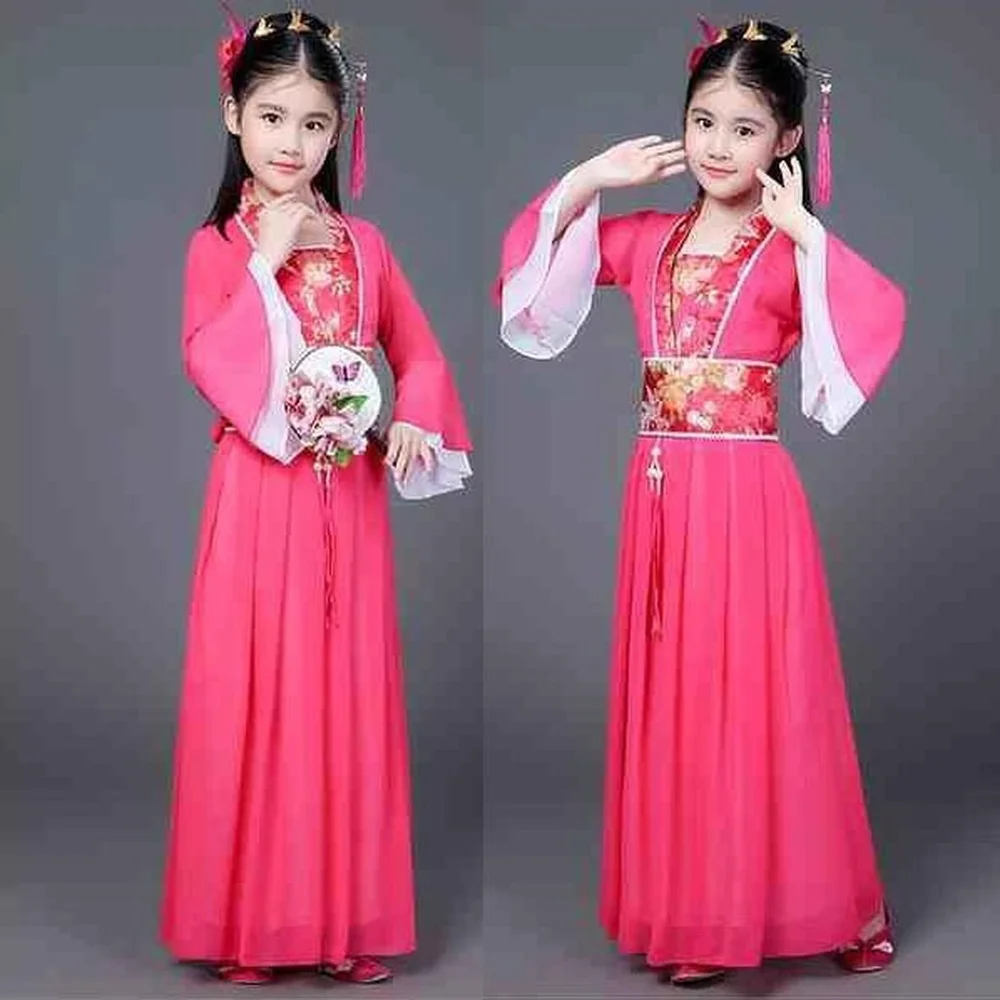Традиционные танцевальные фанаты, традиционное китайское платье для детей Hanfu, красный, ярко-розовый, небесно-голубой, белый, зеленый, желтый костюм на Хэллоуин для девочек