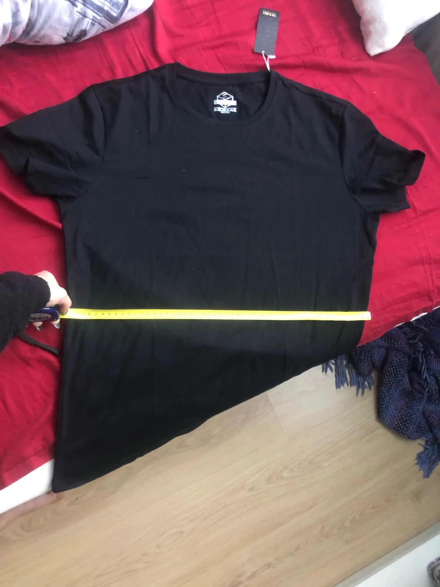 Спасибо продавцу. Товар пришел быстро. Качество отменное. Шикарные базовые футболки. На свои параметры 84-68-94 брала S. Сели идеально. Буду заказывать еще. Однозначно рекомендую!