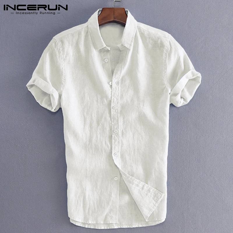 Элегантные мужские футболки INCERUN S-5XL, повседневные рубашки, мужские социальные рубашки, на пуговицах, с отложным воротником, облегающая Мужская одежда, Camisa