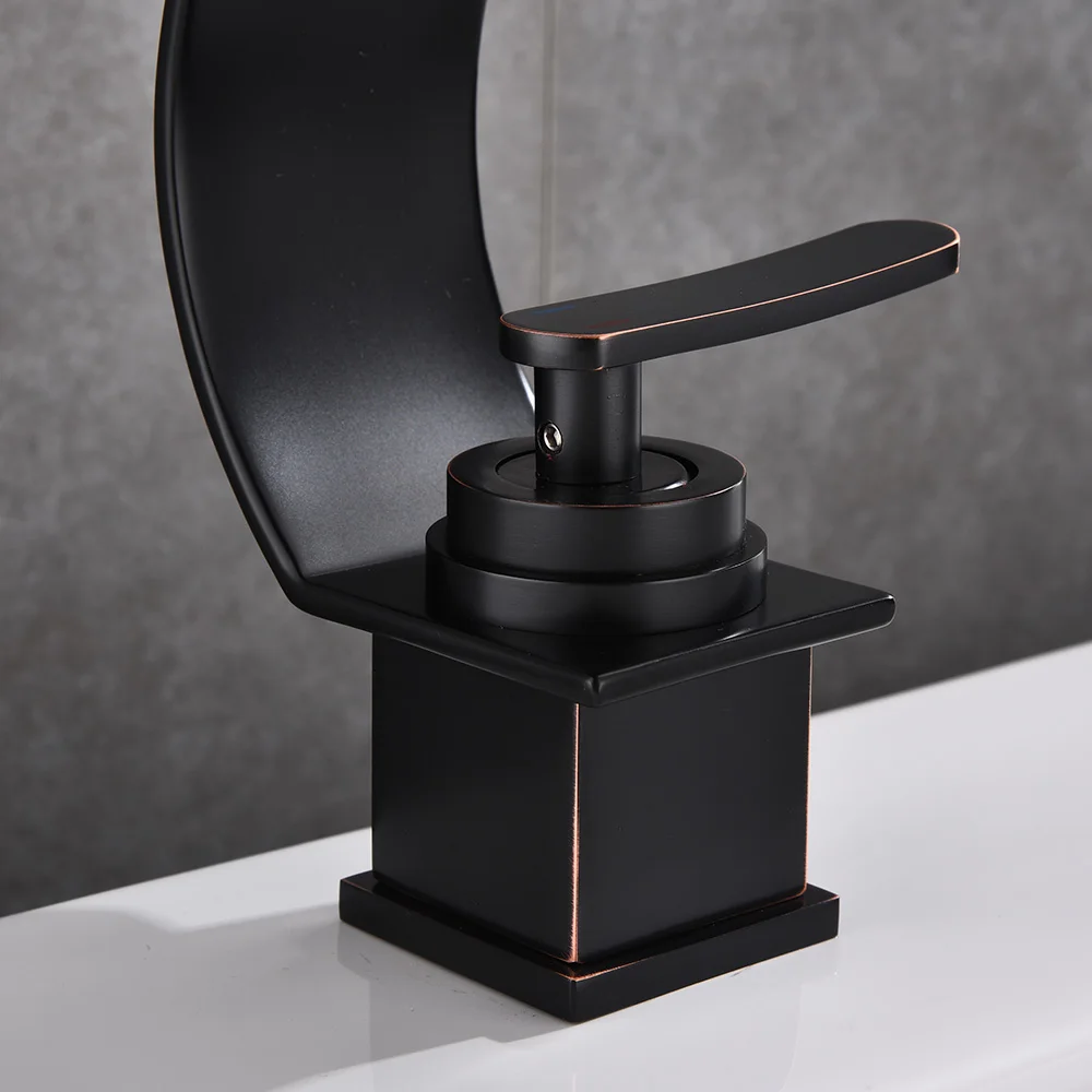 Смеситель для раковины, черный смеситель водопад с матовой поверхностью, кран для раковины в ванную комнату, смеситель для холодной и горячей воды с одной ручкой, краны для ванной 855737