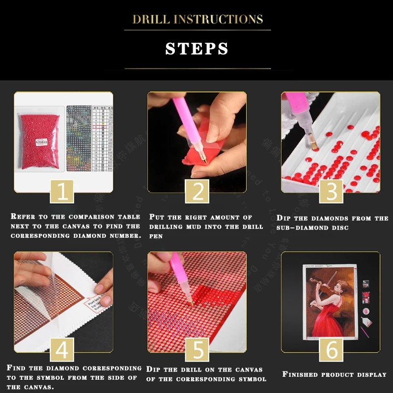 1. См. Таблицу сравнения на холсте, чтобы определить каждый номер алмаза и соответствующий номер печати на холсте.2. Вставьте круглый конец ручки в Дозирующий цемент (нажмите, чтобы сохранить цемент на месте).3. Используйте круглый конец ручки, чтобы приклеить бриллиант и слегка нажмите, чтобы удалить любой дополнительный цемент.4. Разорвите частичную пленку и поместите алмаз на холст в соответствии с соответствующим номером.5. Если вы приклеите алмаз к неправильной области на картине, удалите алмаз пинцетом.6. После завершения слегка прижмите алмазы рукой или книгой, чтобы убедиться, что алмазы надежно закреплены.
