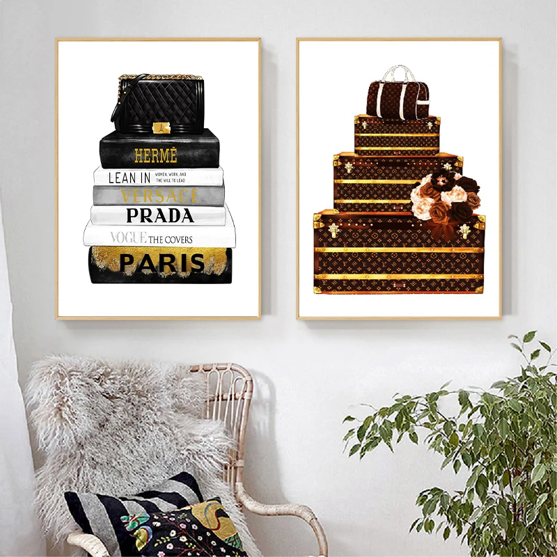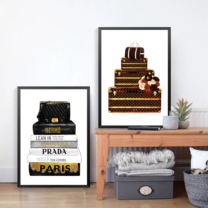 Модная сумка, принты на холсте и плакаты, современные журналы, книги, художественная живопись, настенные картины, украшение для гостиной, дома