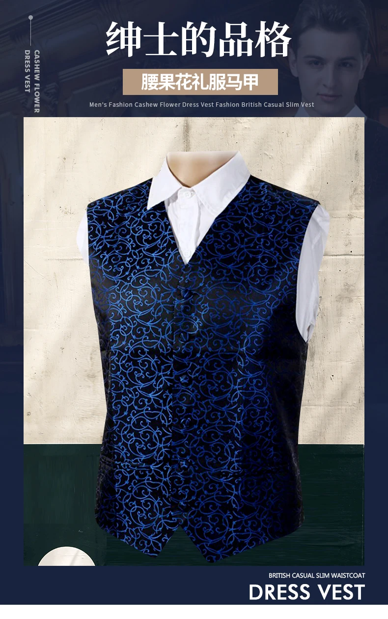 Мужской классический Королевский синий Модный жилет с цветочным принтом, вечерние жилеты для свадьбы, приталенный костюм, жилет для костюма, смокинг