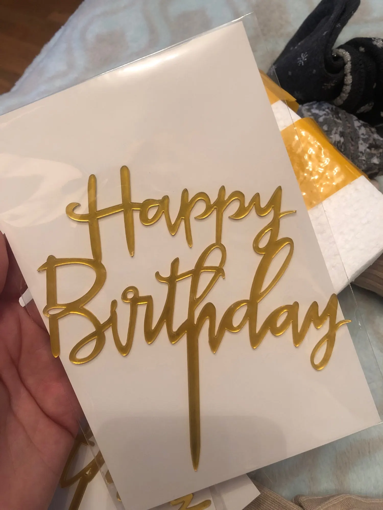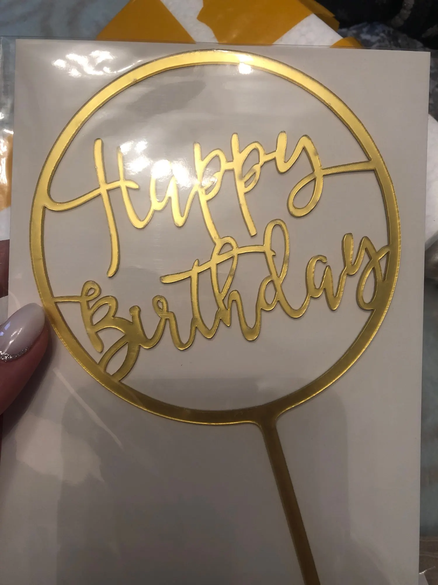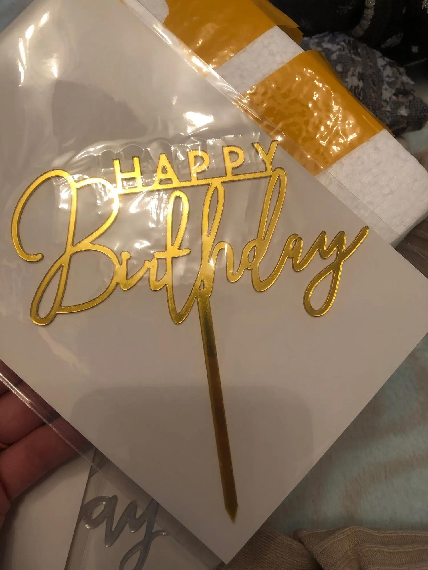 Заказ пришел быстро, примерно через месяц, хотя в среднем до Италии идет около 2 месяцев. Упаковано было хорошо, в картон и вложено в пенопластовые блоки и в пакете. Сверху защитная пленка, топпер красиво сверкает, размер на мой взгляд оптимальный, не слишком большой, останется место и на декор торта.