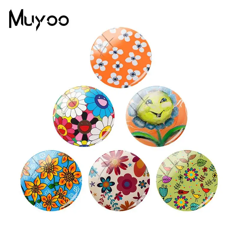 Новинка 2018, украшения в виде подсолнуха, художественный цветок кабошон с фото, украшения ручной работы, стеклянные купольные Кабошоны
