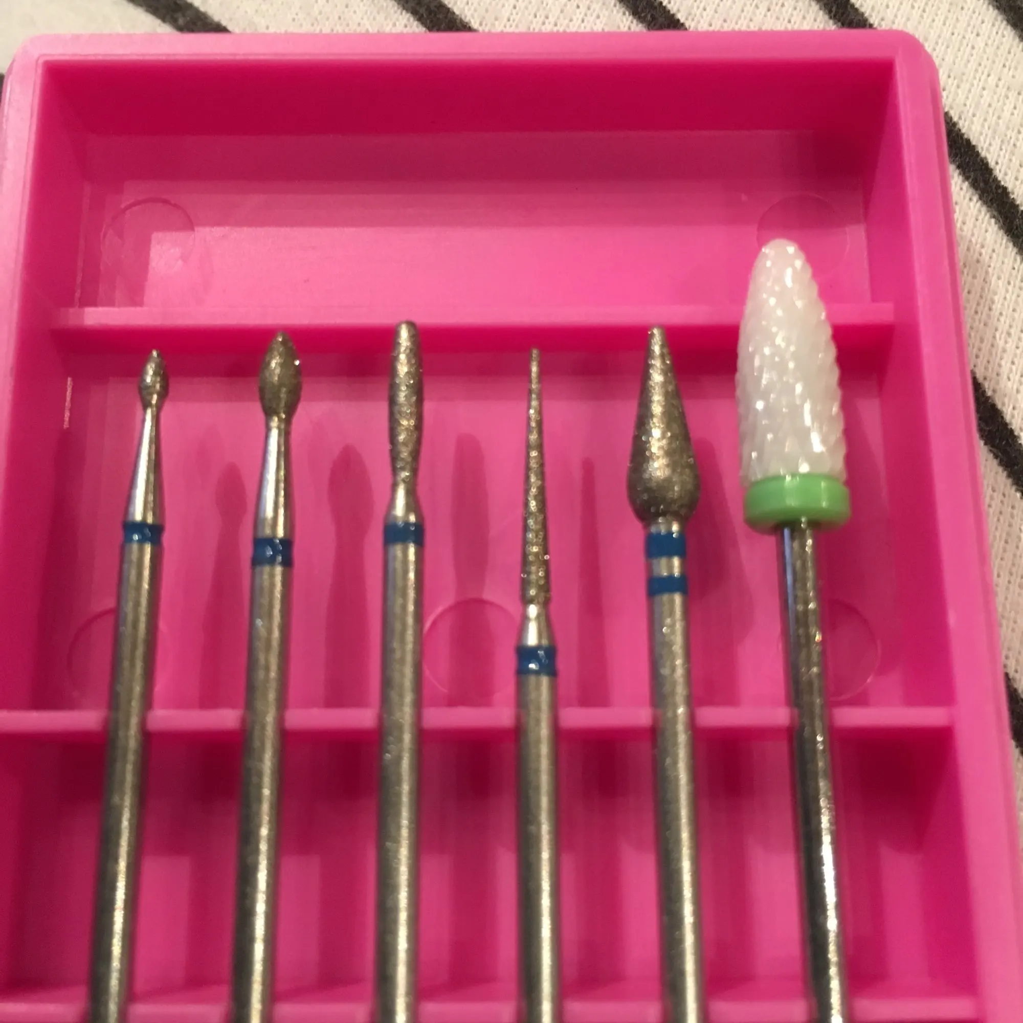 Очень быстрая доставка, фрезы выглядят хорошо, но я делаю маникюр себе и мне не с чем сравнивать.