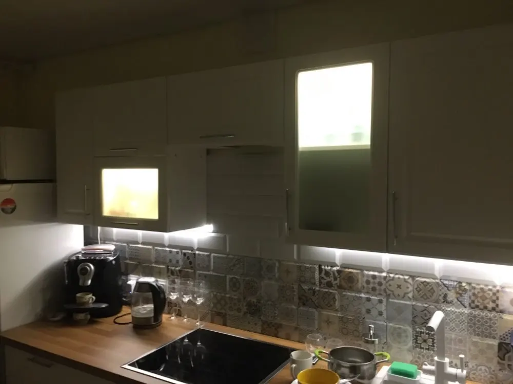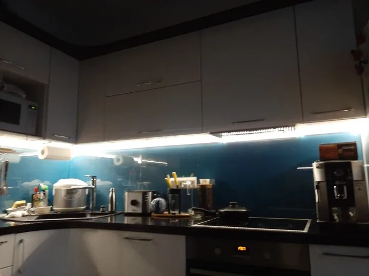 Очень хорошая дополнительная подсветка на кухне,особенно для тех кто любит ночью пожрать))) располагает.Датчик спрятал за шкаф, с пульта берет без проблем.Доставка быстрая.Спасибо ВСЕМ