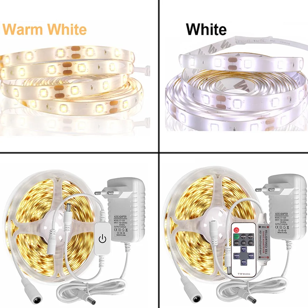 светодиодная лента подсветка 12в для кухни Светодиодная водонепроницаемая лента, 5 м, 2835, Светодиодная лента с регулируемой яркостью, сенсорный выключатель, источник питания 12 В для подсветки шкафа, кухни