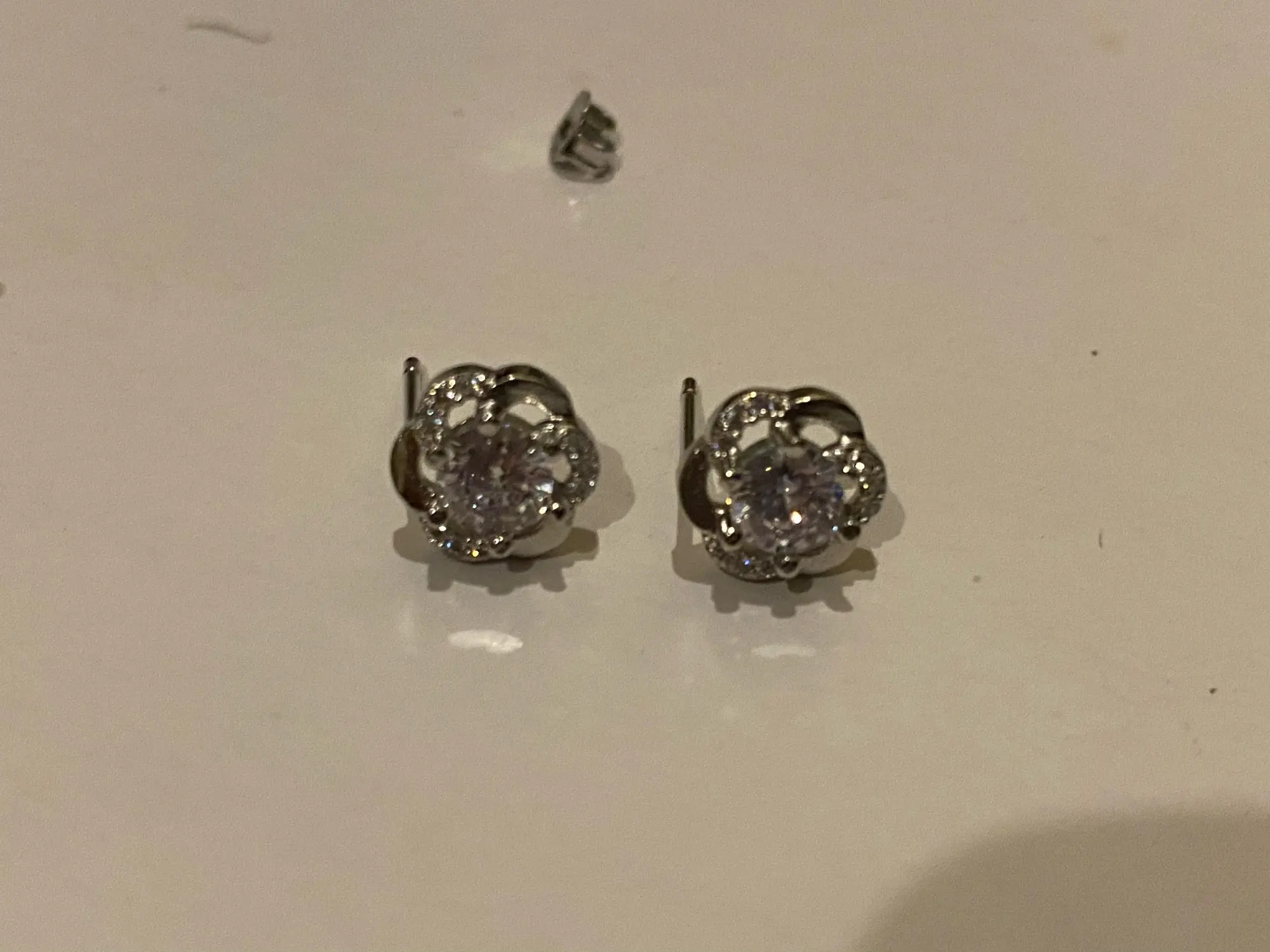 Серёжки не серебро. Одна погнутая, а в застежке нет отверстия.