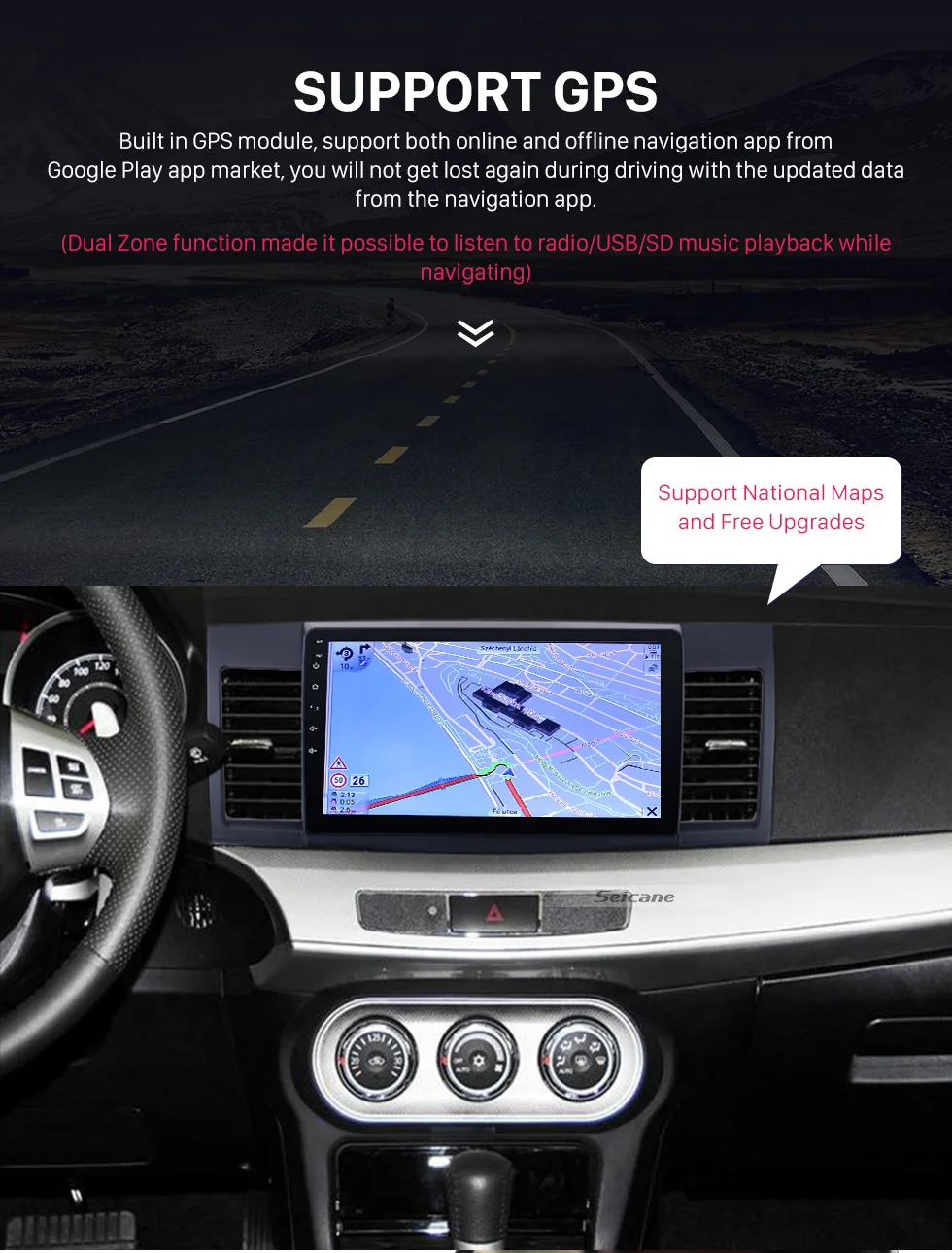 Автомобильный GPS-плеер Seicane, стерео плеер с 8-ядерным процессором для Mitsubishi Lancer-ex 9,0, 2008, 2009, 2010, 2011, 2012, 2013, 2015, 2014 дюймов, Android 10,1