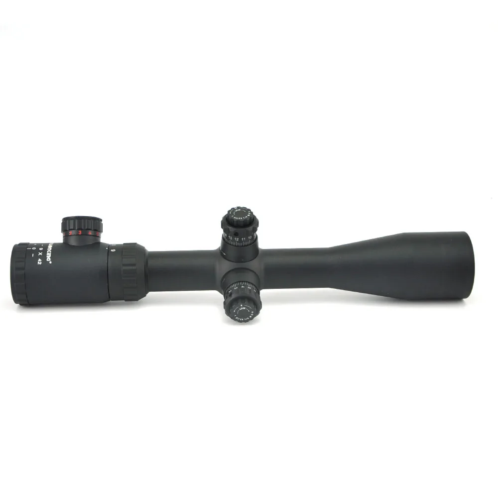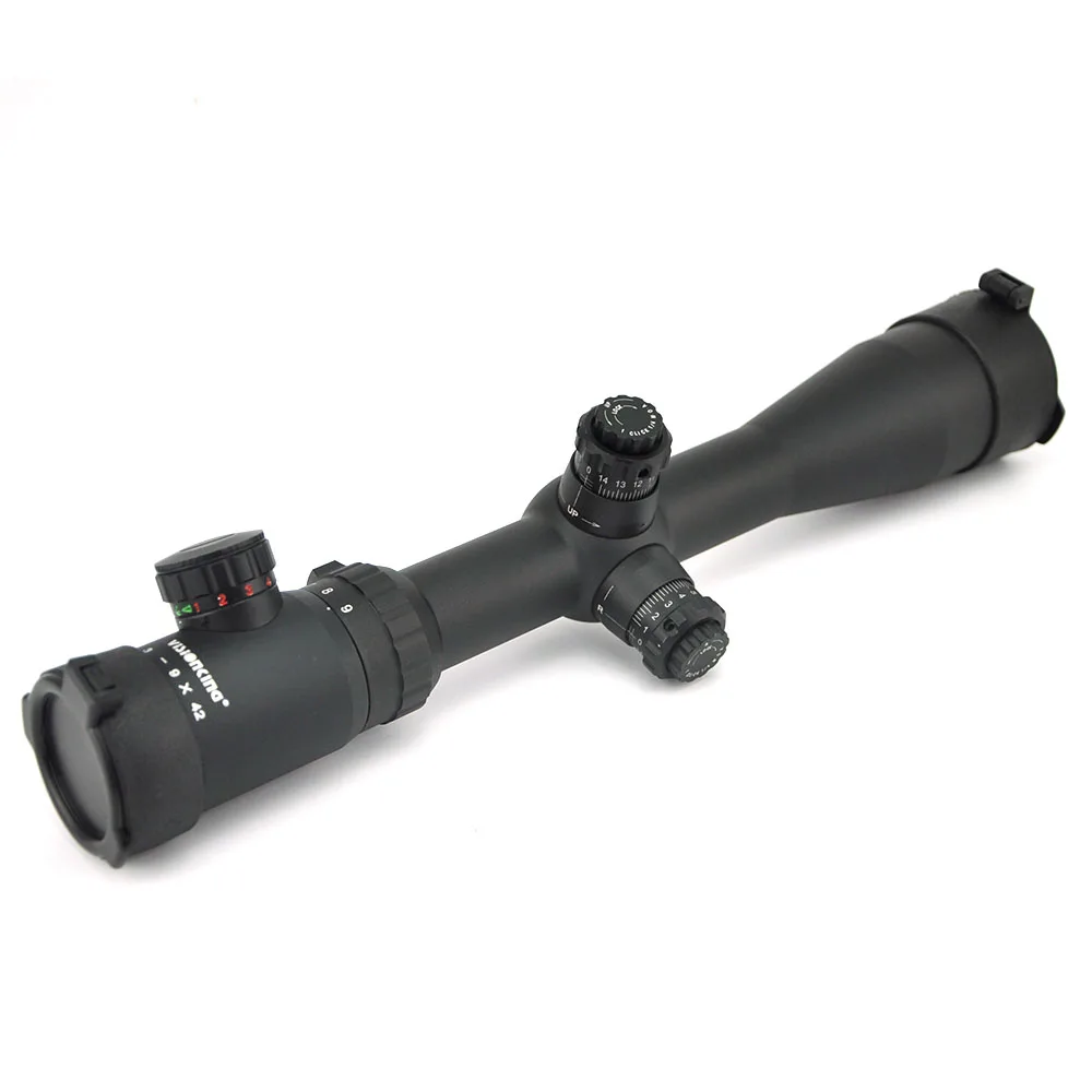 Visionking 3-9x42DL имеет высокую ударопрочность, широкое поле зрения, с полностью Мути-покрытием объектива и 30 мм цельной трубки, двойной подсветкой обеспечивают очень хорошую производительность во всех видах условий. Это 100% водонепроницаемый и огнестойкий, освещенный красный и зеленый, со стеклом Mil-dot, приятный для всех видов охоты.