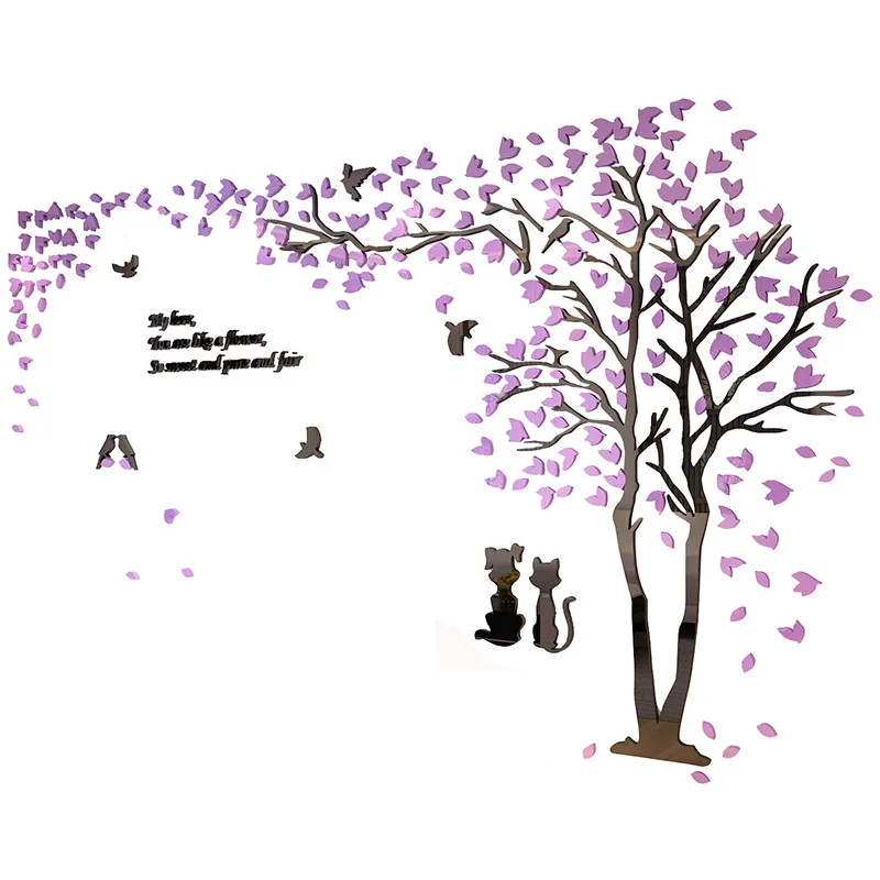 Креативные наклейки на стену с цветущим деревом, акриловые, наклейка на стену, Романтический, для домашнего декора, 1 шт., для телевизора, дивана, фон украшения на стену