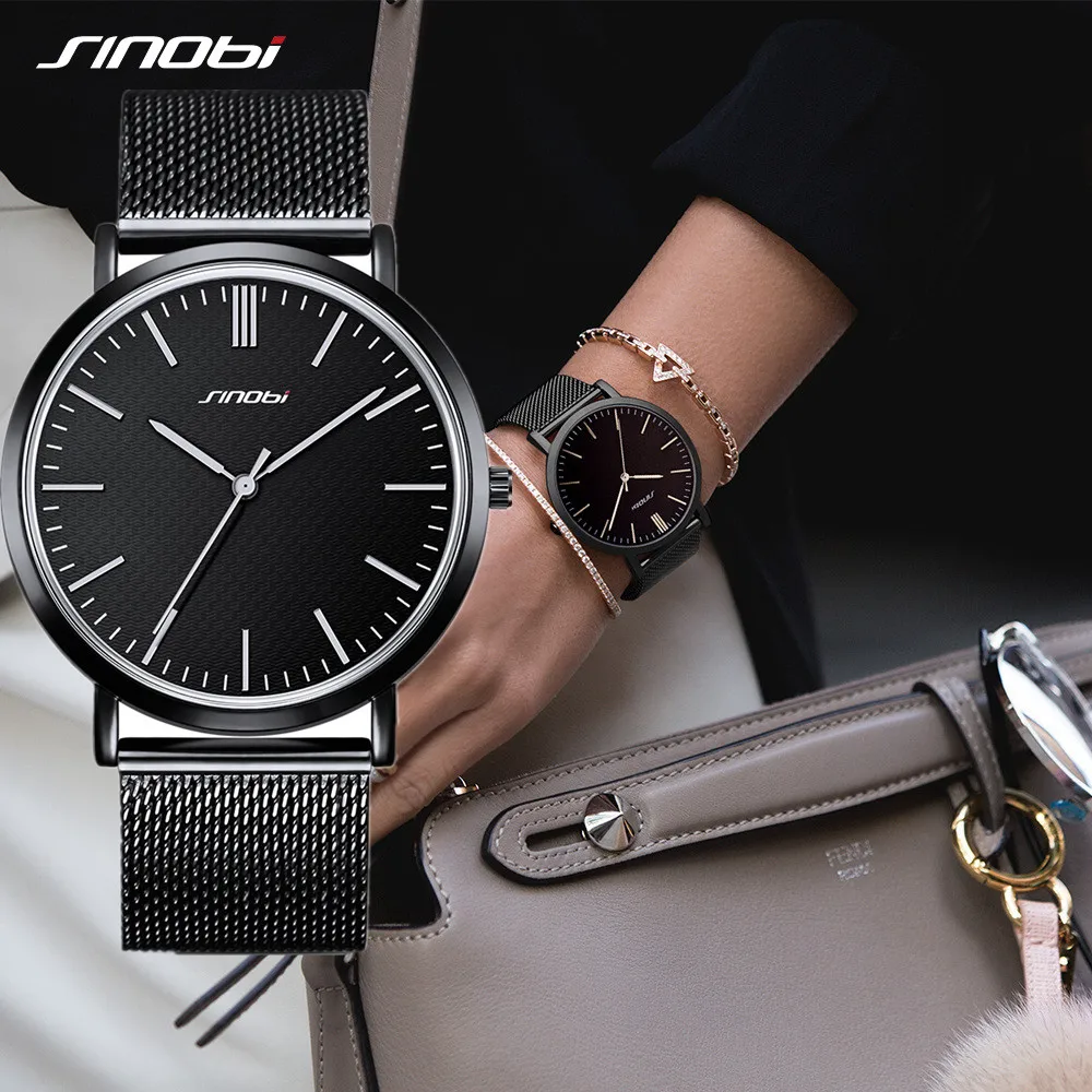 Часы наручные SINOBI Женские кварцевые, ультратонкие аналоговые, с сетчатым браслетом из нержавеющей стали
