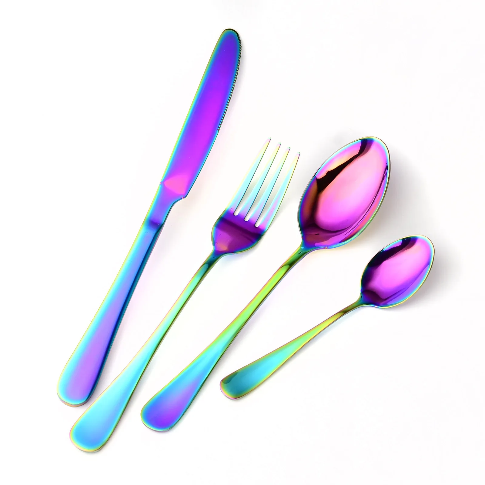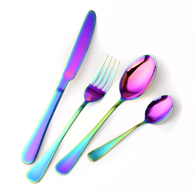 Столовые приборы из нержавеющей стали, набор столовых приборов для ресторана столовые приборы для путешествий, радужная вилка, нож, ложка
