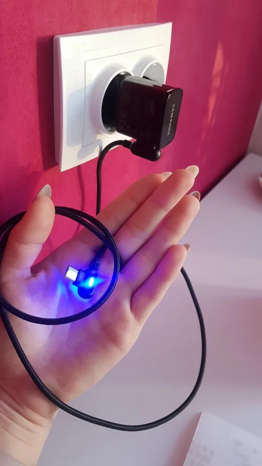 Кабели очень удобные. Пластик плотный, не хлипкий. Диод светится ярко, но ночью настолько ярко, что мешает. Работают отлично, сидят плотно.