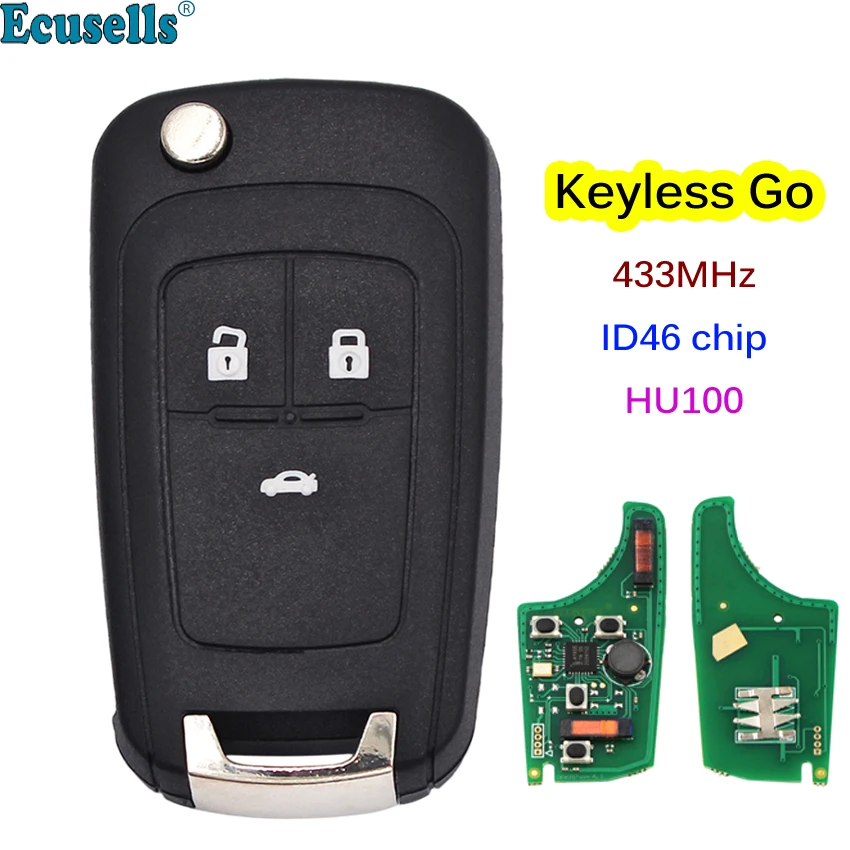 3-кнопочный БЕСКЛЮЧЕВОЙ складной дистанционный ключ-брелок для Chevrolet Cruze Aveo 433 МГц с чипом 46 HU100 Balde