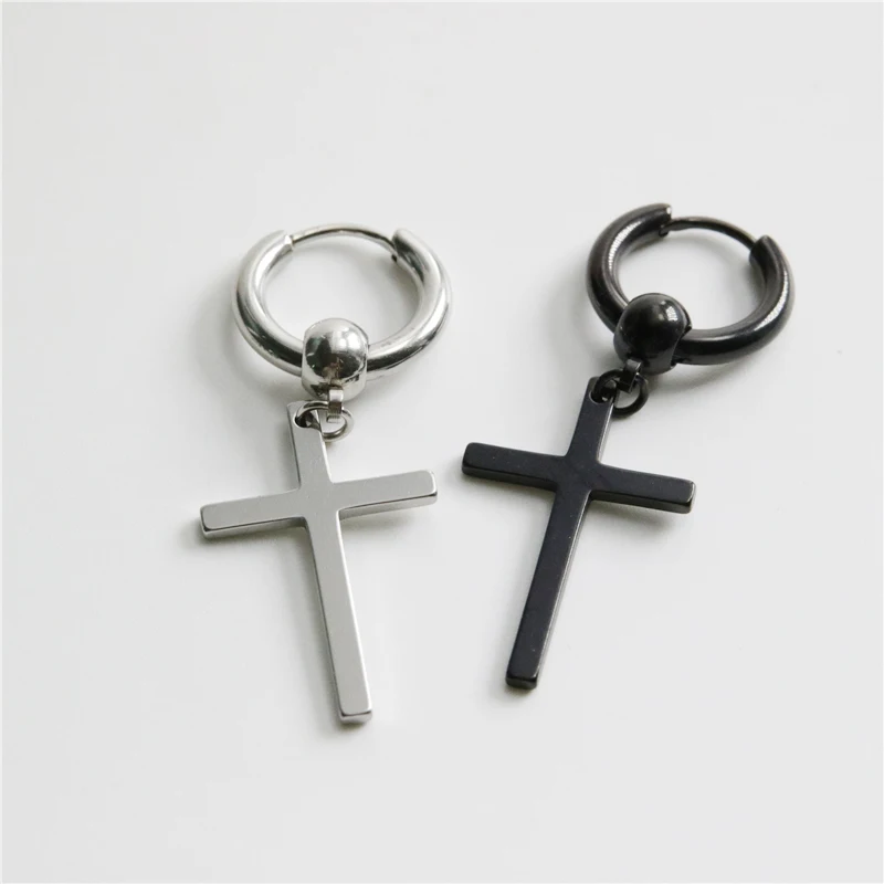 Серьги-подвески в стиле панк UVW041, длинная цепочка из хирургической стали с крестом, висячие серьги в стиле бохо, серьги для пирсинга BTS, 2 шт.