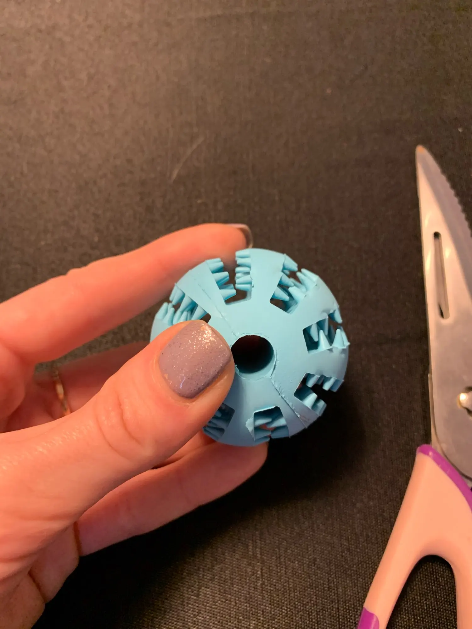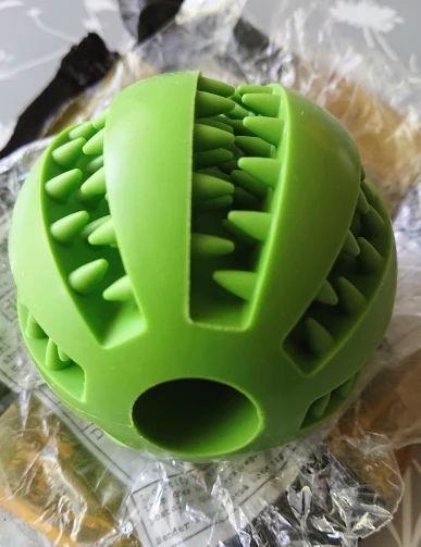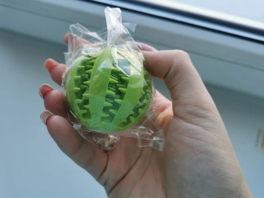 Мяч супер! Пёс в восторге от него, но пока не очень понял, что корм из мяча надо добывать, просто с удовольствием грызёт. Снимаю 1 балл за доставку, которая была 2 месяца вместо заявленных 4 недель.