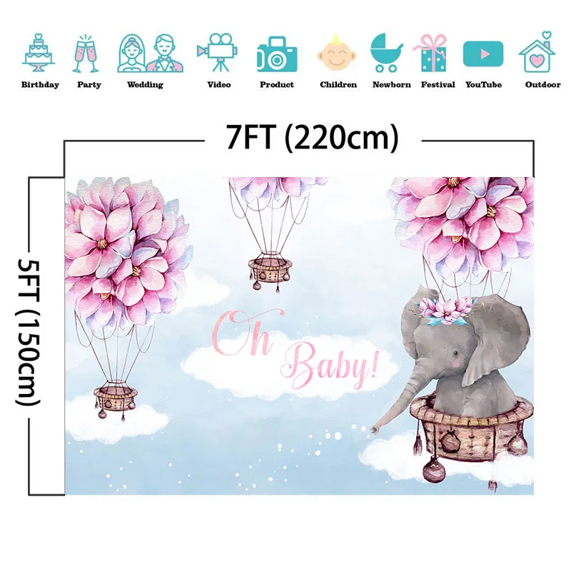 Mocsicka фон для фотосъемки новорожденных детей с изображением слона и воздушного шара