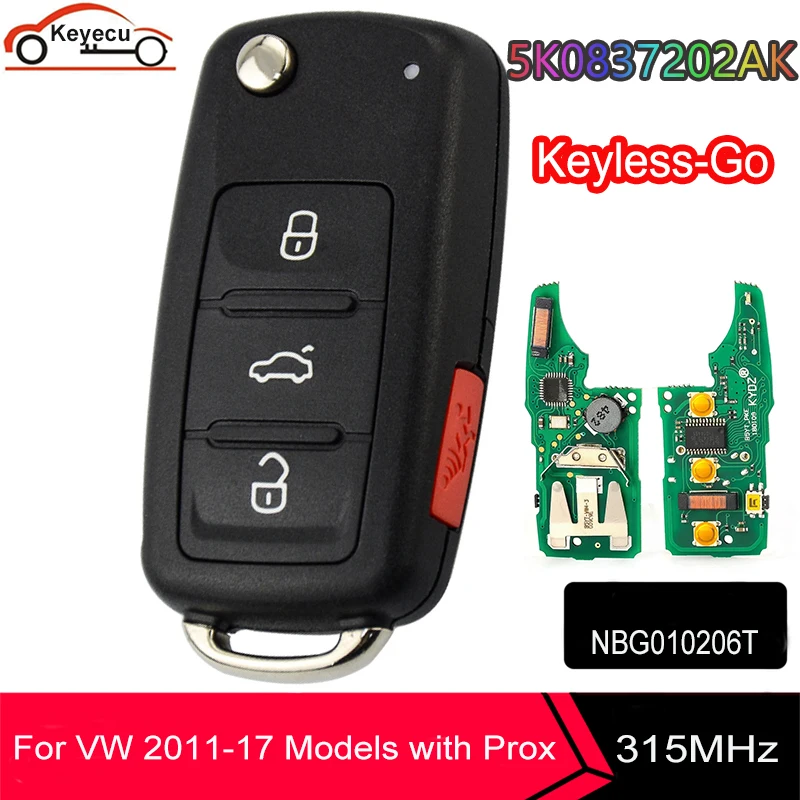 KEYECU 3 + 14 кнопочный безключевой дистанционный ключ 315 МГц ID48 для Volkswagen 2011-2017 (модели с Prox) PN: NBG010206T 5K0 837 202 AK