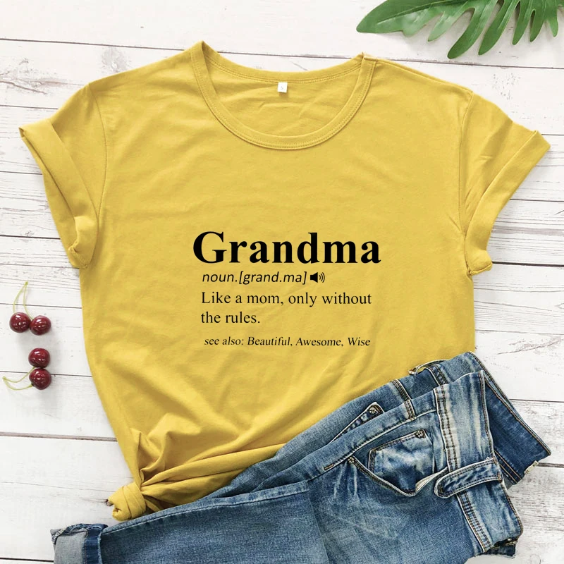 Бабушка как мама черная футболка лето эстетическое в Tumblr битник гранж смешные футболки Повседневное графические Саркастические поговорки Футболки-топы