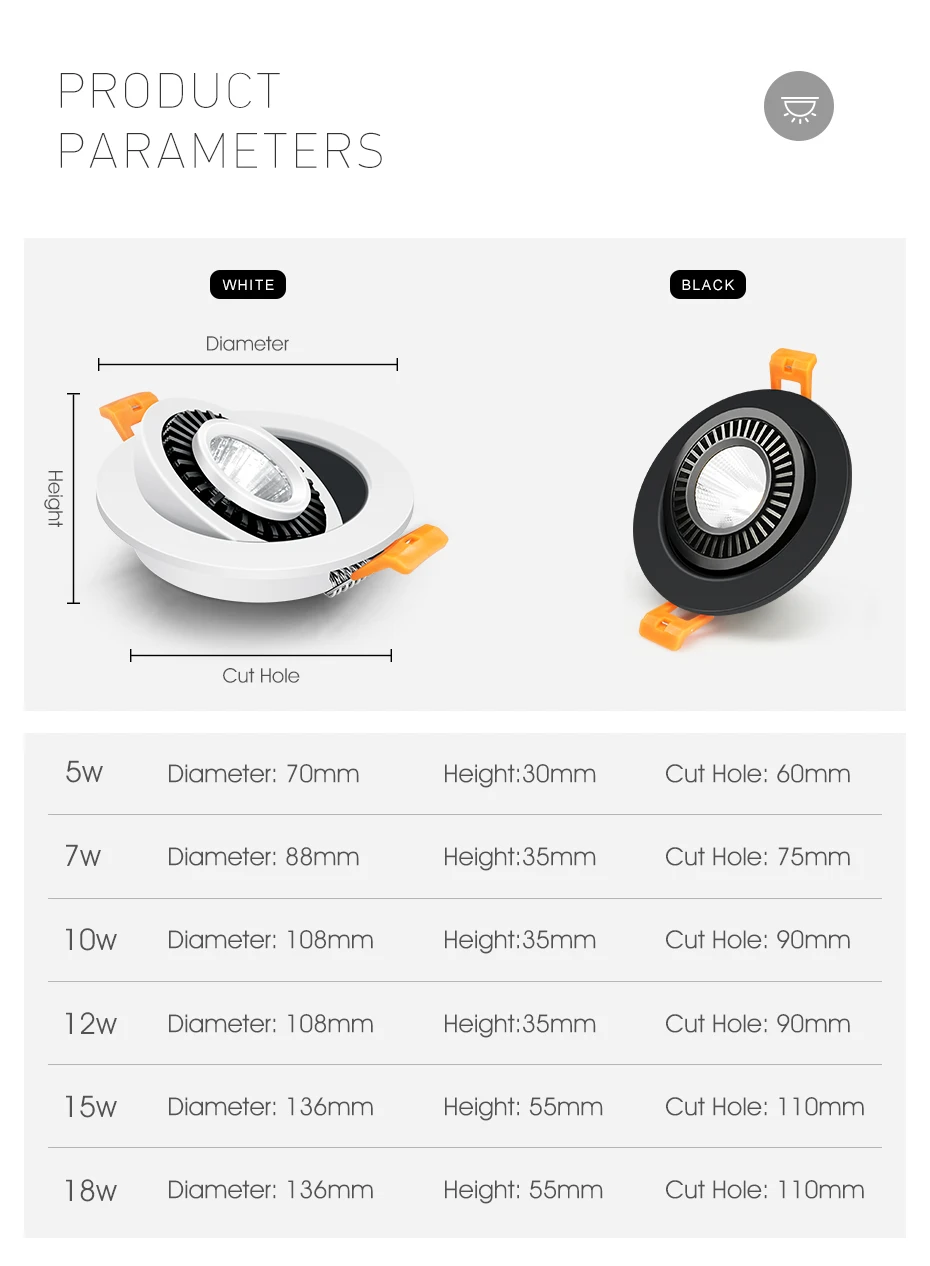 Утопленный светодиодный точечный Светильник направленного света DBF, регулируемый угол, черныйбелый корпус, 5 Вт, 7 Вт, 12 Вт, 15 Вт, 18 Вт светодиодный потолочный светильник для фона с рисунком
