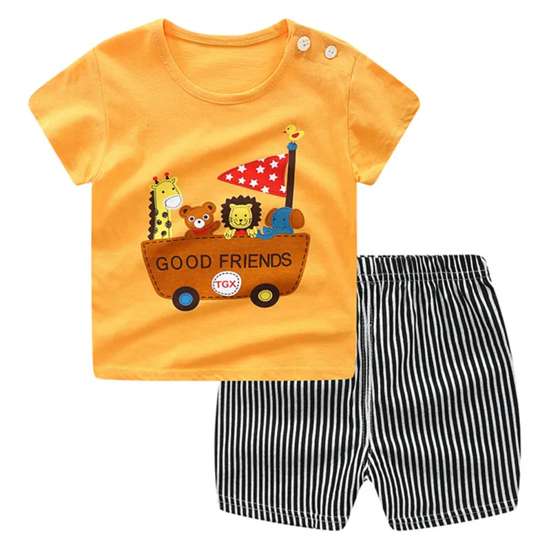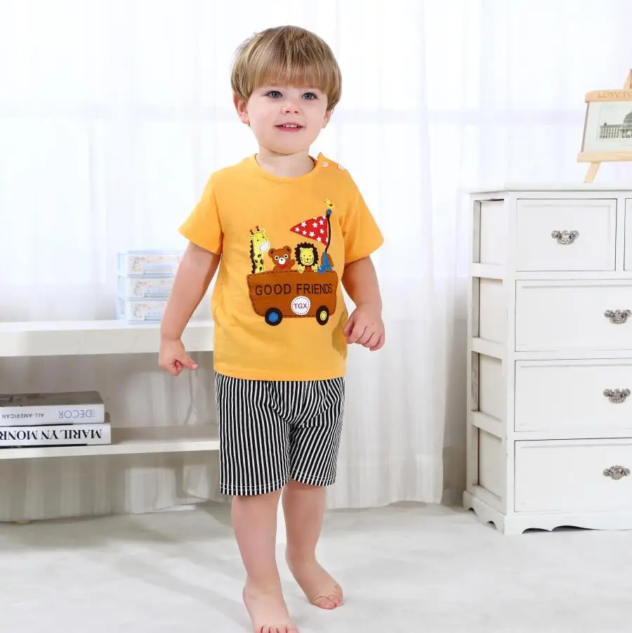 Комплект одежды для маленьких мальчиков, весна-лето, футболка со львом + шорты, Одежда для новорожденных девочек, детский спортивный костюм DS19