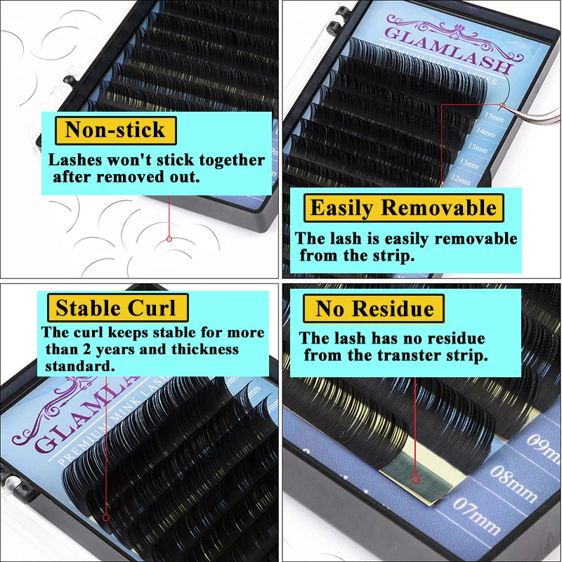 Ресницы GLAMLASH J, B, C, D, L, LU, длина 7-25 мм, смешанные в одном, лоток для ресниц, индивидуальное наращивание, Мягкие Накладные ресницы из искусственной норки