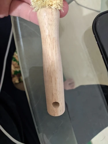 Переход от деревянной ручки к щетке сгибается при наделении. Не прочный материал внутри. Но чистит отлично, выглядит хорошо как и на фото.