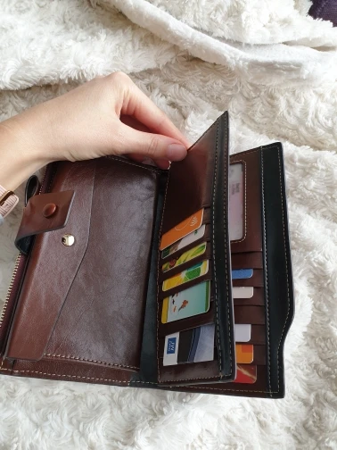 Я очень рад этому товару. Кошелек хорошего качества, довольно большой, для многих карт. Теперь я могу держать все в порядке в своем бумажнике! Там много места для них! Что касается кожи, конечно, это не лучшее качество кожи, но продавец сообщит нам о ее натуральной коже. Спасибо, я доволен и рекомендую его!