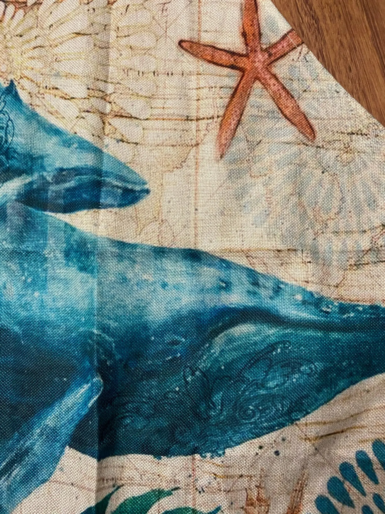 Красивый, краски сочные, не дорогой. Хорошо отстирывается, что очень важно для фартуков.