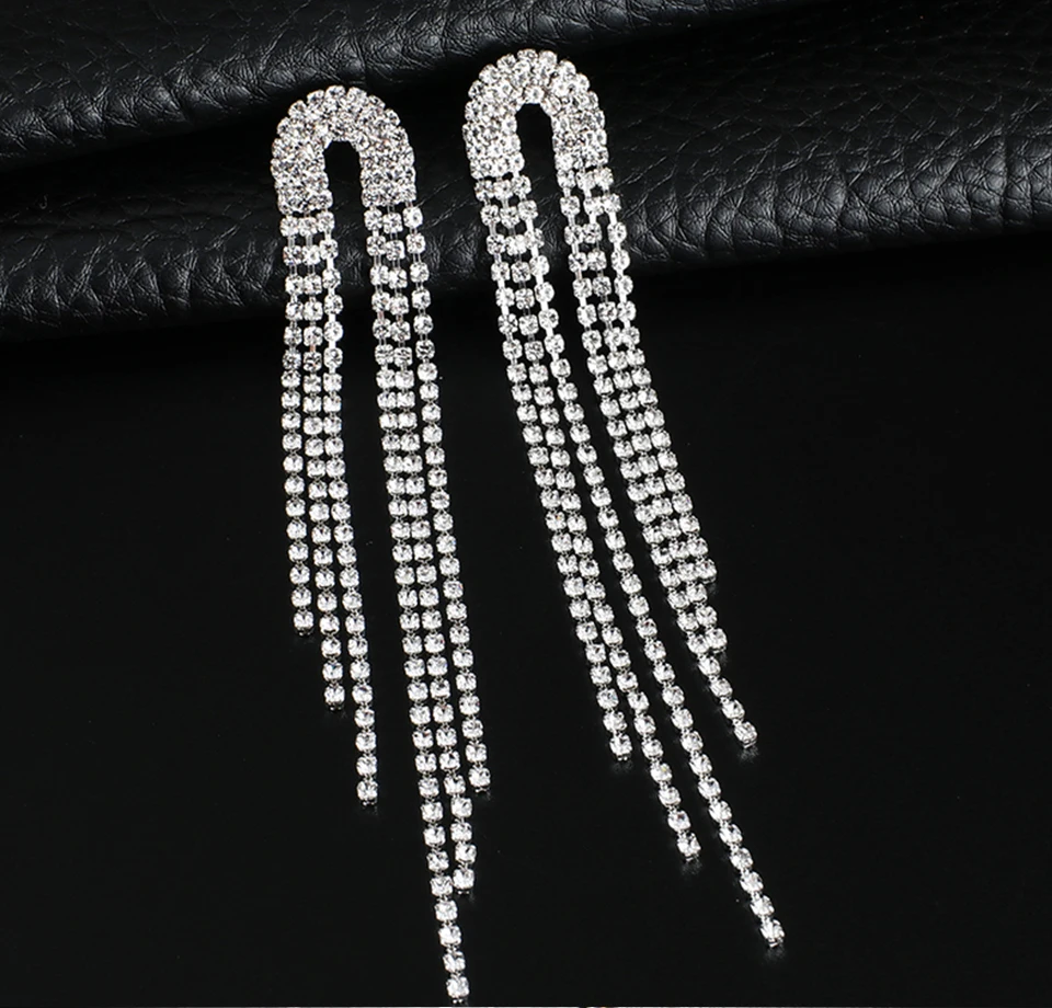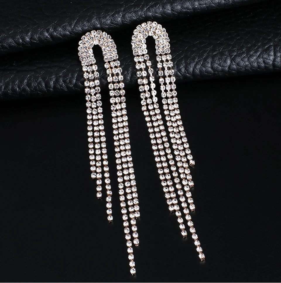 Стразы серьги с кисточками серьги-капли для женщин Роскошные ювелирные изделия длинные висячие серьги 2019 модные аксессуары для вечеринок E619